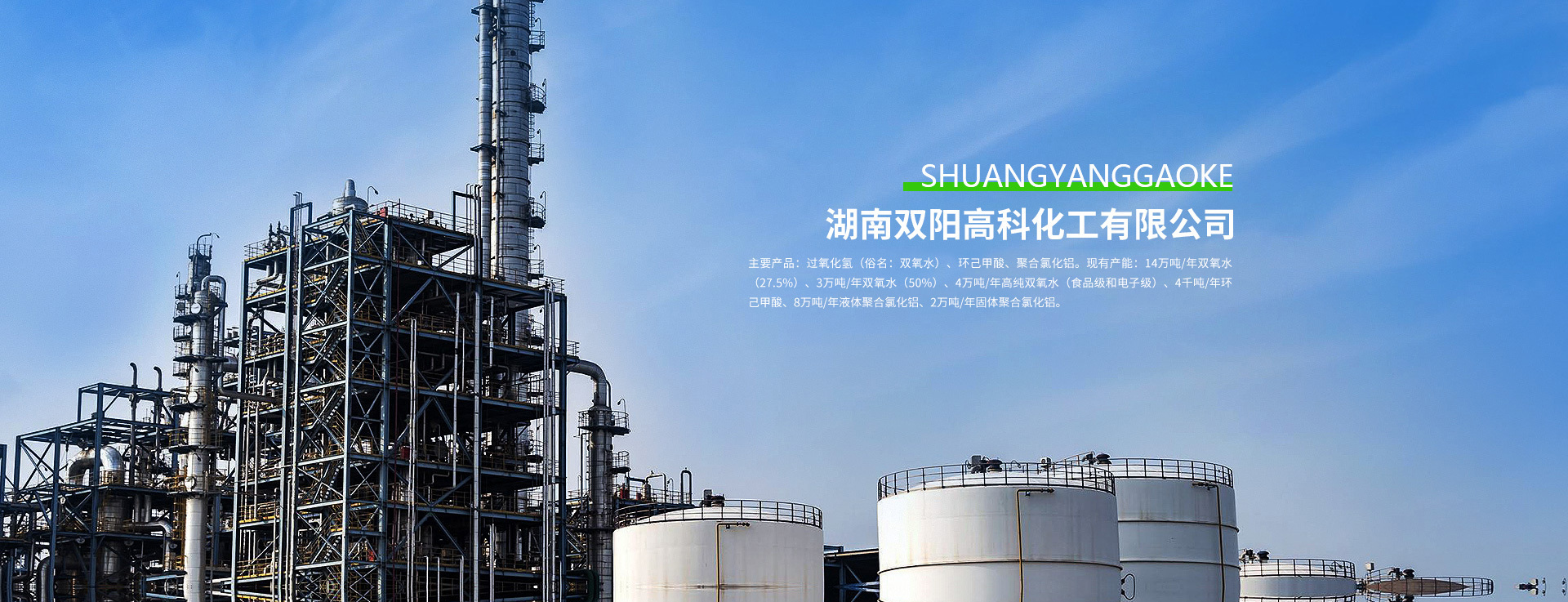 雙陽高科主要產品有工業級雙氧水、食品級雙氧水、電子級雙氧水、化學試劑級雙氧水、雙氧水消毒液、工業級聚合氯化鋁、食品級聚合氯化鋁、純度為99.5%的環己甲酸等產品,年產值過2億元,目前,公司產品內銷全國各地,外銷東南亞等國家和地區,擁有廣闊的國內與國際市場。
